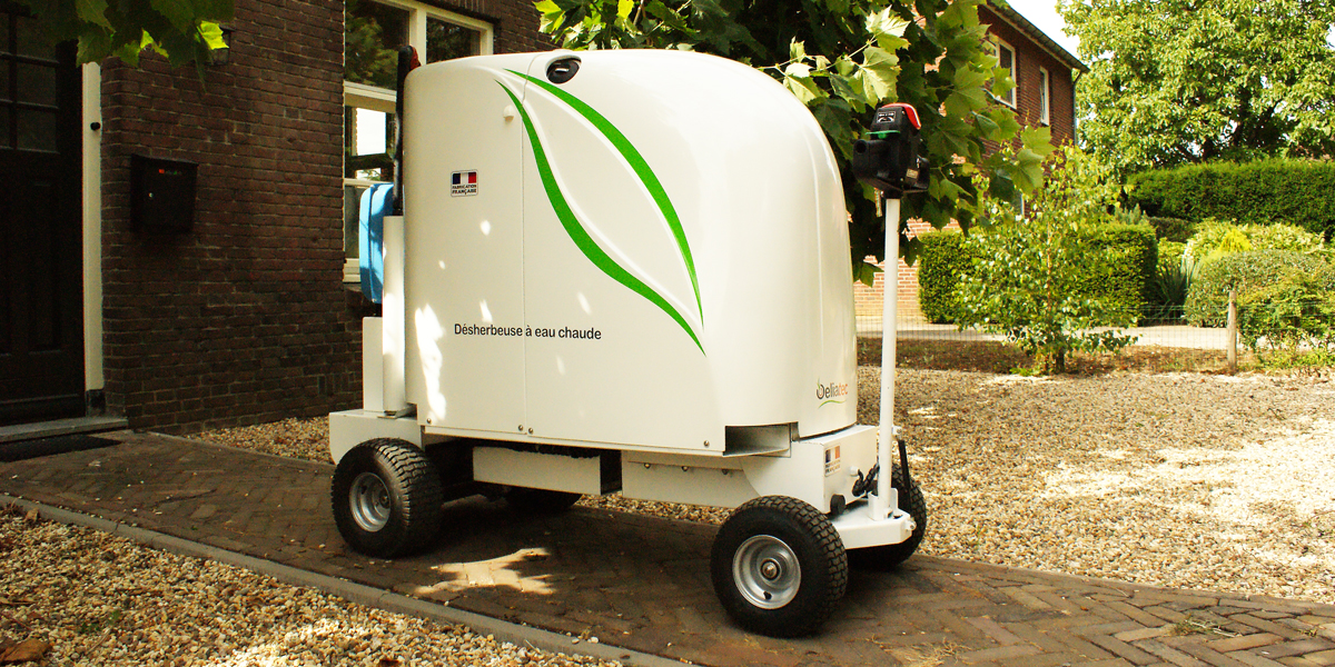 De kleinste mobiele onkruidbestrijdingsmachine met heet water ter wereld. Met elektrisch aangedreven onderstel, geïntegreerde watertank, computergestuurde modulerende boiler en waterbesparende spuitlans.